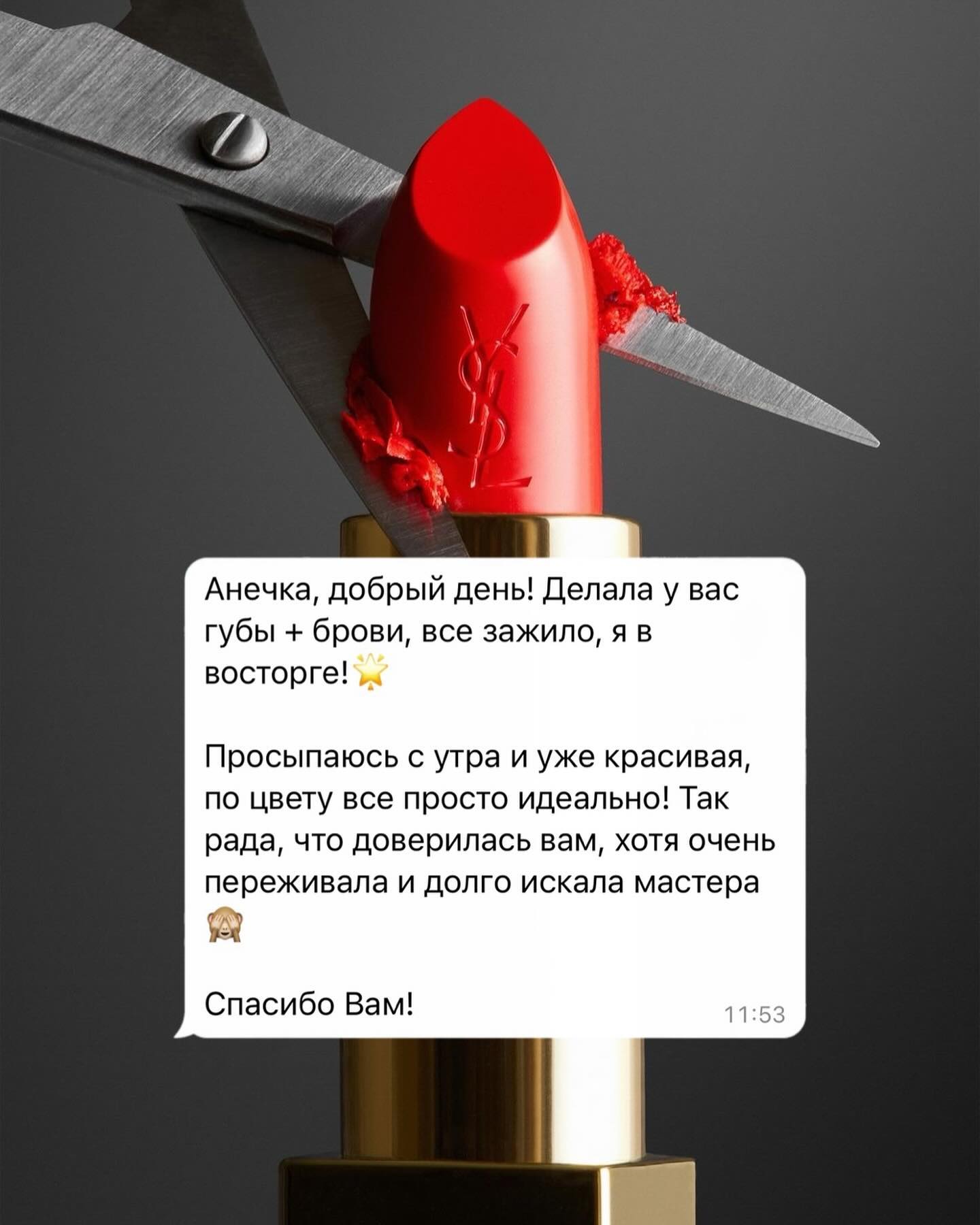 Анечка, добрый день! Делала у вас губы + брови, все зажило, я в восторге! Просыпаюсь с утра и уже красивая, по цвету все просто идеально! Так рада, что доверилась вам, хотя очень переживала и долго искала мастера Спасибо Вам!
